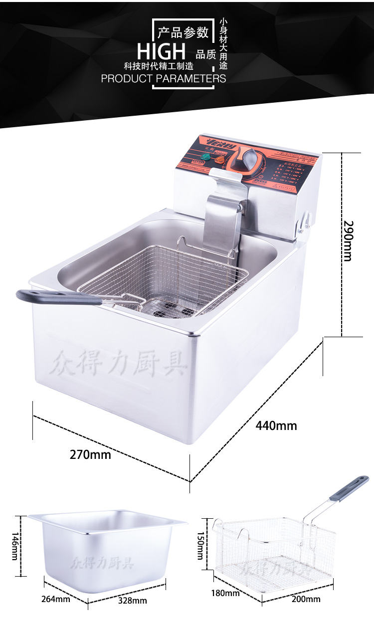 單缸單篩電炸爐,小型油炸爐,油條機,贛州廚房設備采購電話0797-8284441,單缸雙篩油炸爐價格390元/臺,單缸單篩電炸爐190元/臺
