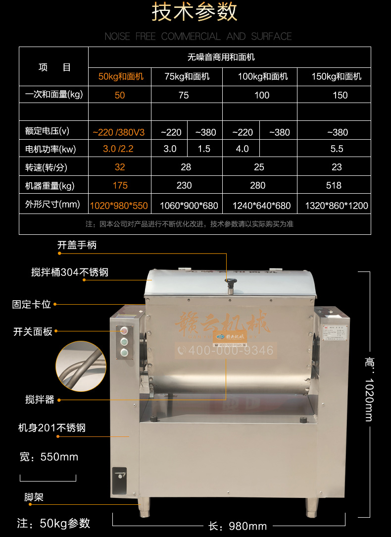 眾得力廚具為您提供商用和面機,米面加工設備,包子機,餃子機,壓面機,揉面機,打蛋機、發(fā)酵箱、面案工作臺,面點加工間整體解決方案,本和面機系列有15kg、25kg、50kg、75kg、100kg多個型號款式可供選擇。攪拌軸及攪拌桶均為食品級不銹鋼材質(zhì)加工制作,工作聲音底,攪拌均勻,操作簡單