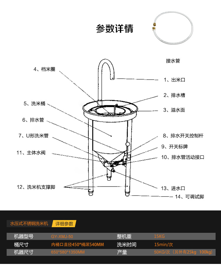 50kg不銹鋼水壓式洗米機價格:2150元/臺,100kg不銹鋼水壓式洗米機價格:2980元/臺