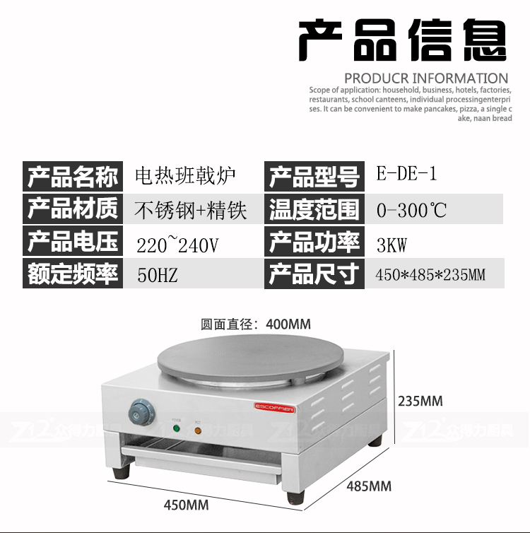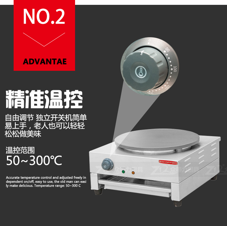 班戟爐是一種恒溫加熱,速熱快的美食設(shè)備,整機(jī)外殼采用優(yōu)質(zhì)不銹鋼材質(zhì),板材厚,加熱盤(pán)采用生鐵鍛造,表面光滑,食品級(jí)不粘涂層拋光處理,可加工制作各種煎餅。