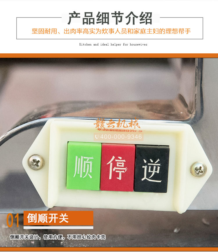 贛云牌12型臺式電動強力絞切機,絞肉切肉灌腸一體機,采用1.0kw大功率純銅電機作為動力,絞肉切肉一體,整機設(shè)計平衡性能良好,絞肉切肉速度快,絞龍采用不銹鋼材質(zhì)。價格是2080元 (不含稅)