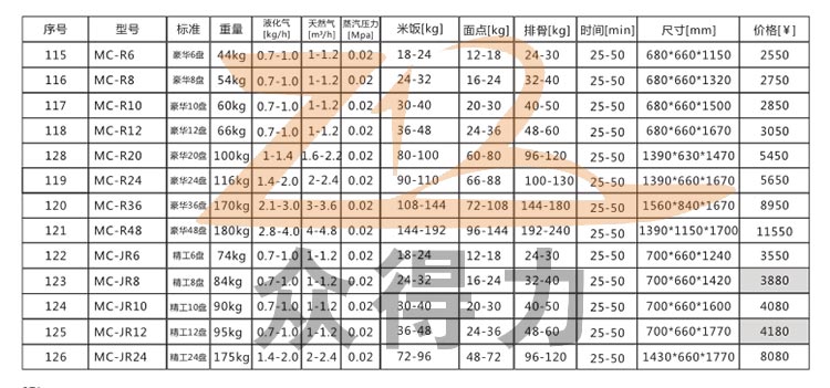 燃氣系列蒸飯柜詳細技術參數及公司采購平臺統一報價: