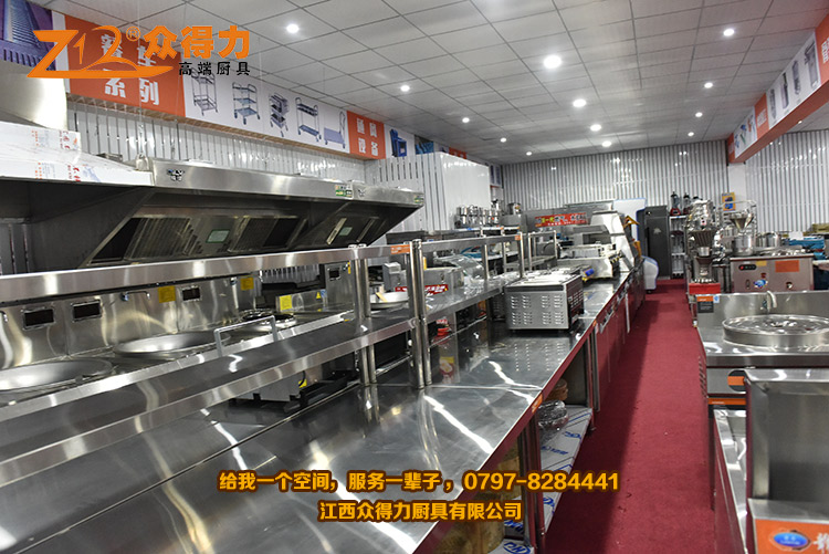 眾得力廚具,給我一個空間,服務一輩子!江西眾得力廚具有限公司產品展廳一角,專注廚房設備,為贛州地區提供各種小吃設備、早餐設備、自動調湯設備、米面加工設備、火鍋店設備、酒店用品、調理品等系列商用廚具,并為餐飲食品企業提供整體規劃及解決方案。